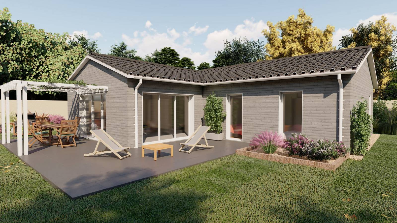 L’architecture en « L » de Trano lui confère une possibilité d’aménagement sans limite sur tout type d’environnement en privilégiant l’espace et la lumière, aussi vous ferez de votre maison TRANO une maison unique et confortable.
