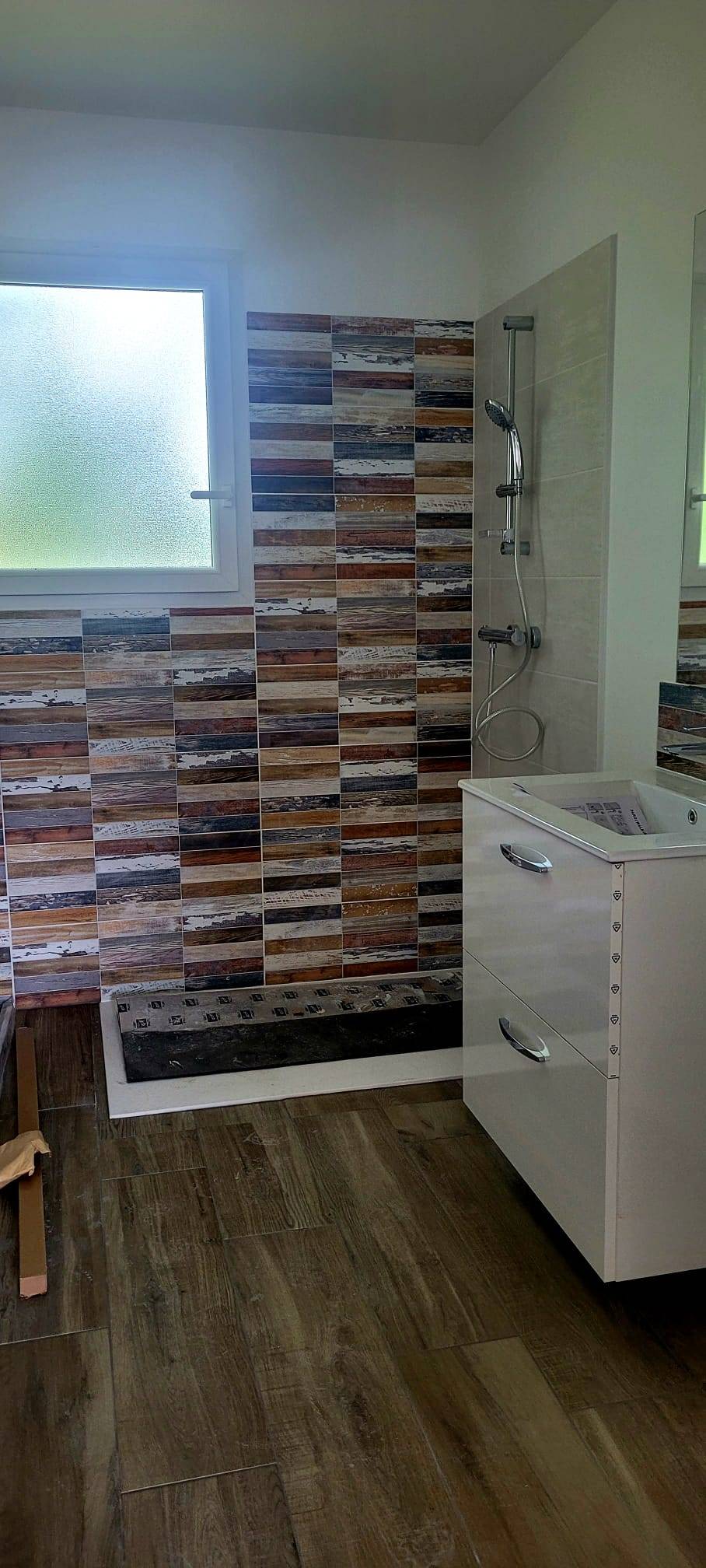Cette maison de plain-pied de près de 90 m² se caractérise par un style local traditionnel, parfaitement intégré à son environnement. Les murs en ossature bois sont revêtus d’un bardage horizontal type ALTO en pin traité marron, conférant à la construction une allure rustique et chaleureuse. Les menuiseries en aluminium et PVC blanc ajoutent une touche de modernité et assurent une excellente isolation.
