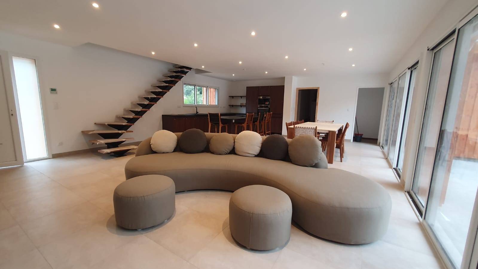 Cette maison en ossature bois, d’une surface habitable de près de 190 m², offre un cadre de vie spacieux et lumineux. Le bardage en Douglas naturel lui confère une esthétique chaleureuse et intemporelle, tandis que les menuiseries en aluminium clair ajoutent une touche de modernité et de finesse.